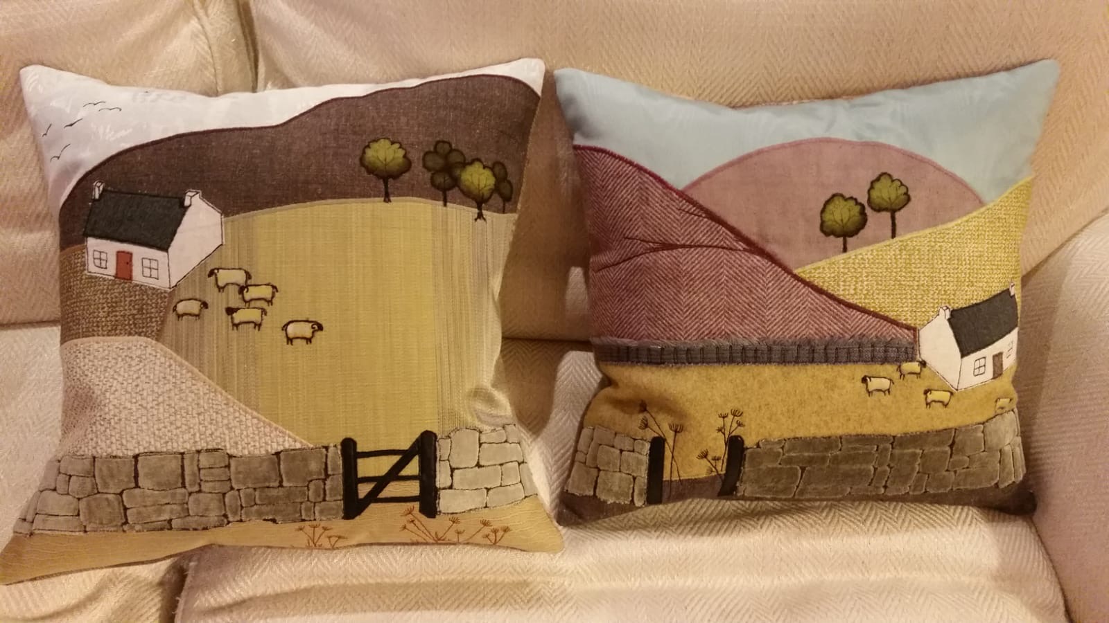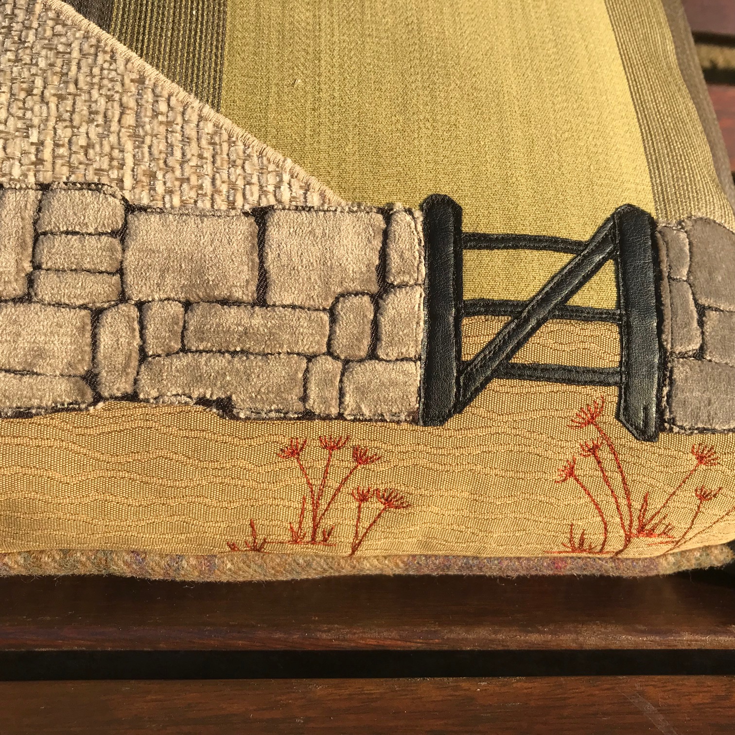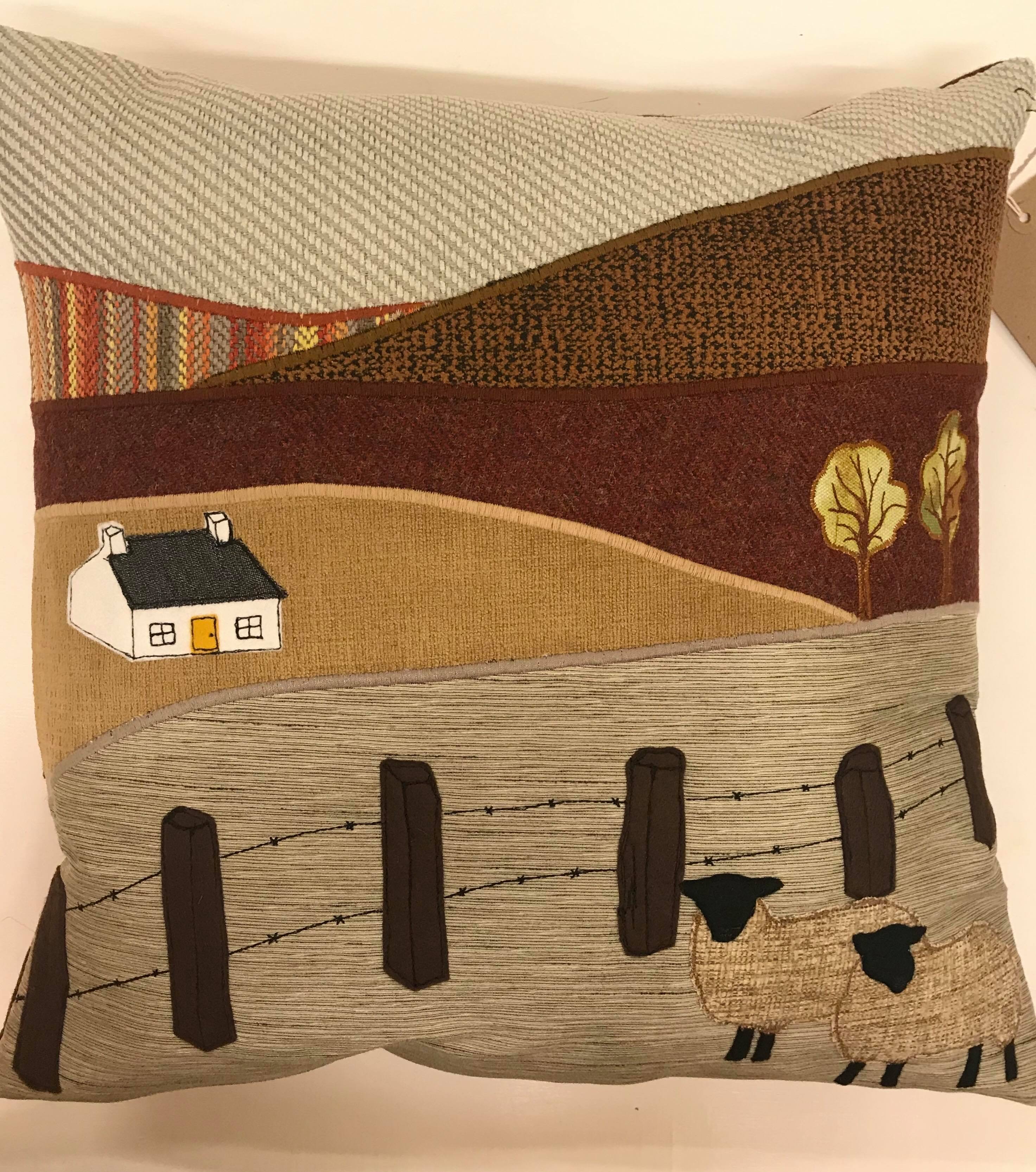 We’re very pleased to welcome Kath Perry to Betty’s for a full-day textile workshop. You may already know Kath’s beautifully crafted cushions and cards, which we stock in the shop. Her work uses layered fabrics, texture, appliqué and stitching to create distinctive landscape scenes.